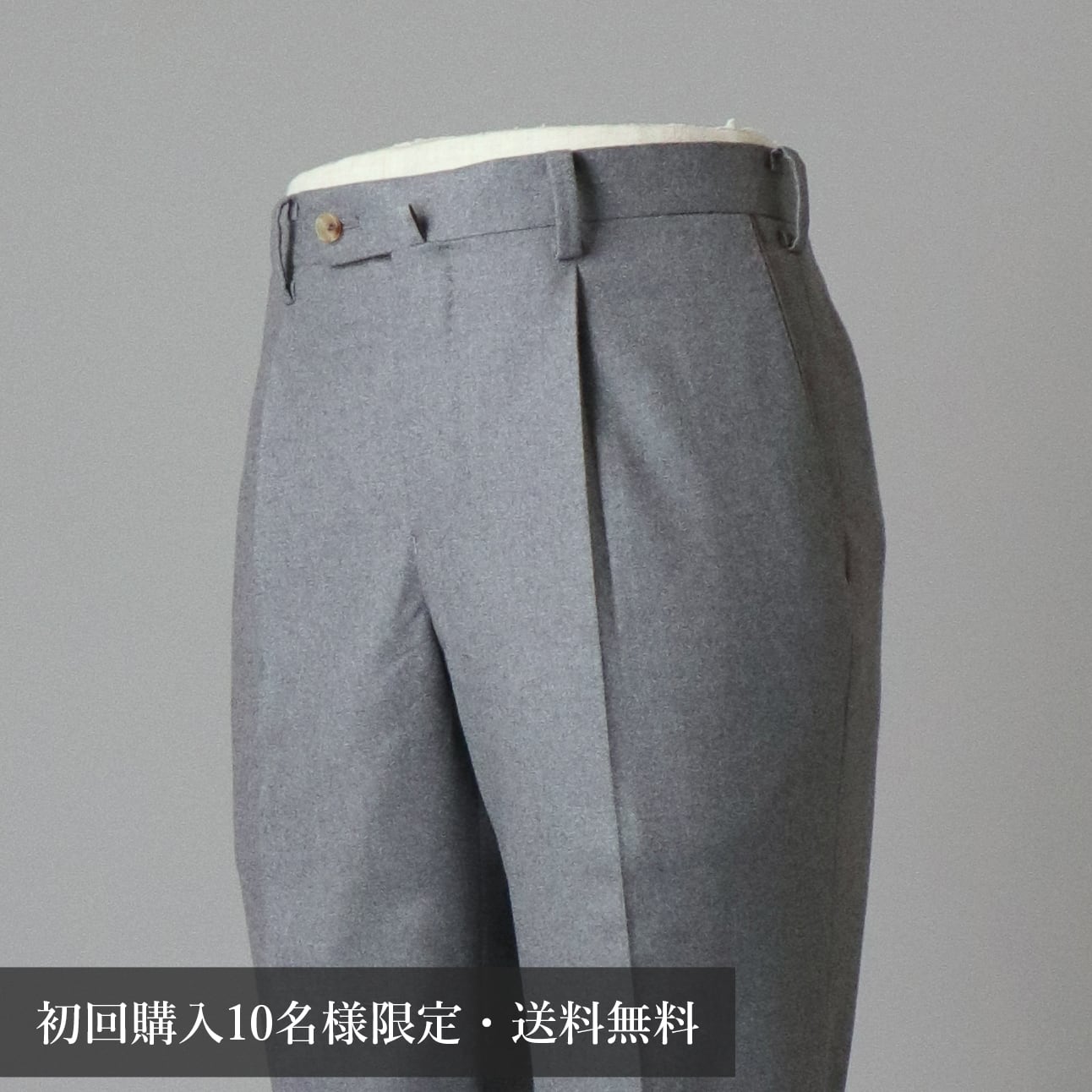 ★大好評!★【初回限定】【お一人様1本限り】【送料無料】【お試しオーダー】高品質ファインウールトラウザーズ ライトグレー <厳選国産ウール><秋冬物>(Calsa High Grade仕立て)