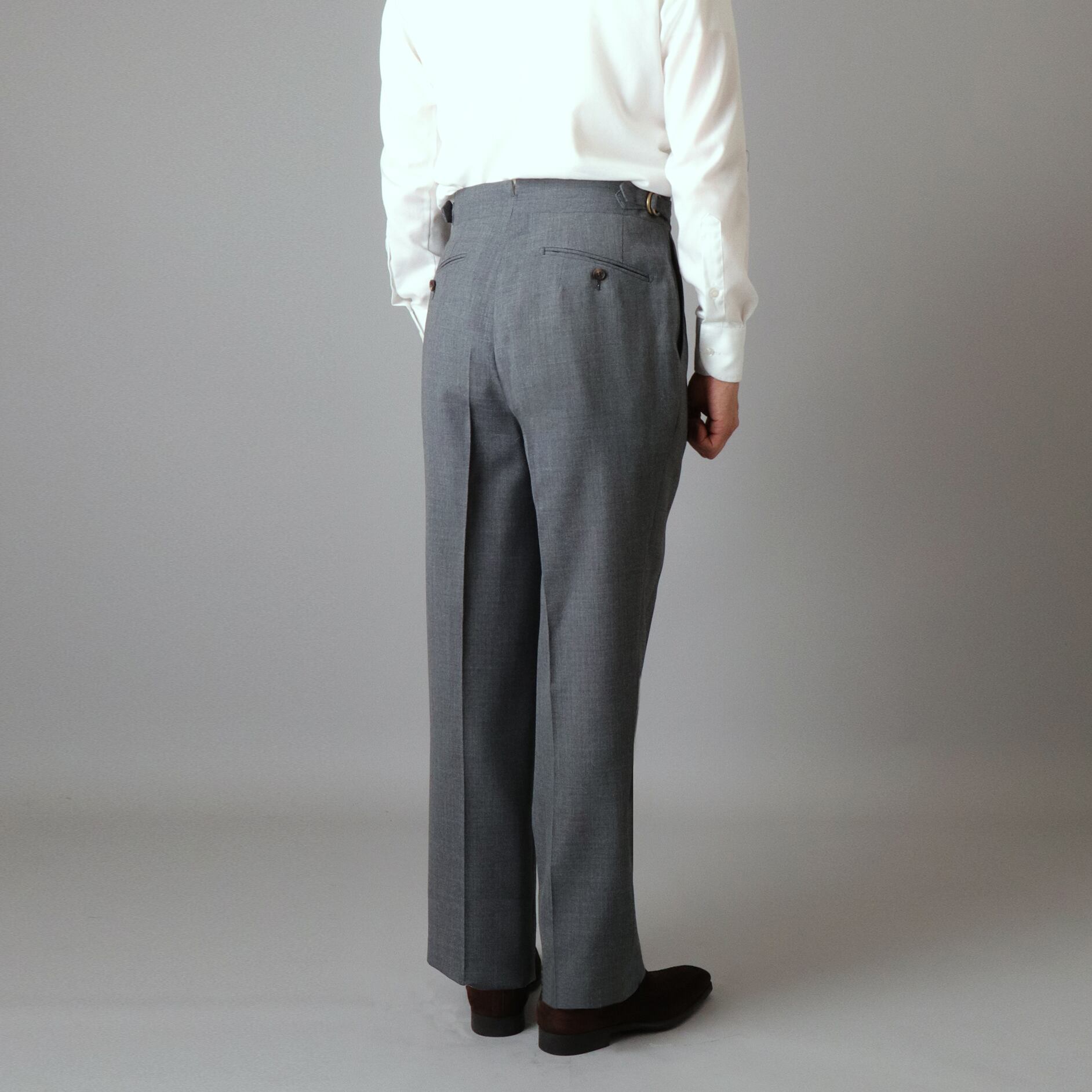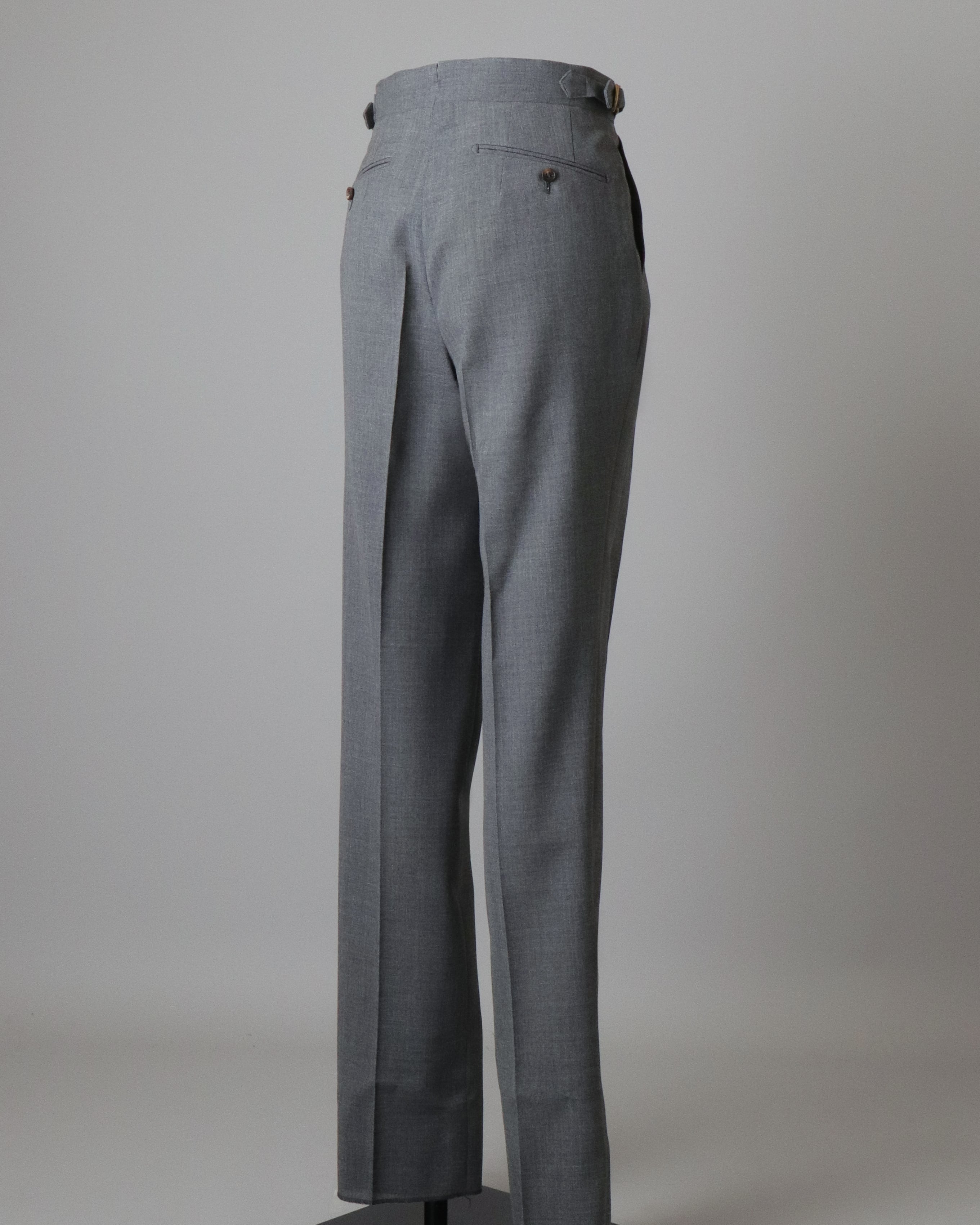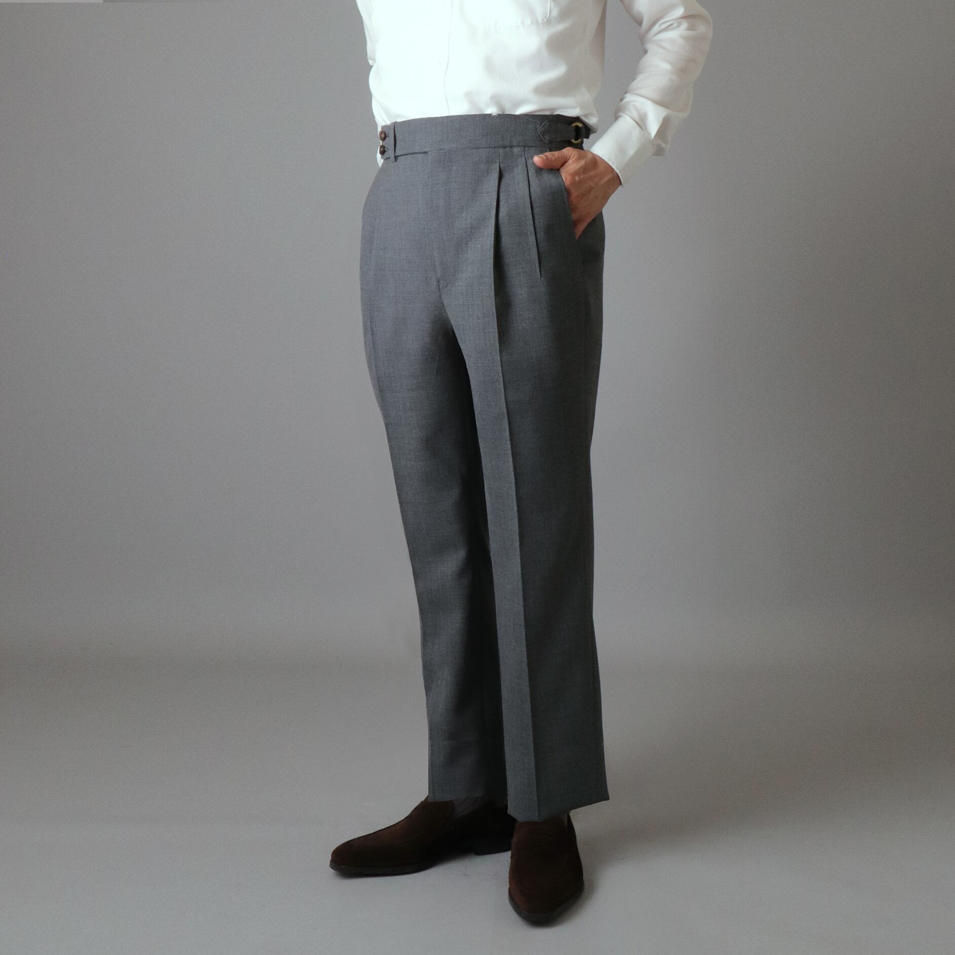 葛利毛織の高品質なフレスコ生地です。2プライの強撚糸を使用し、さらりとした肌触りが特徴です。通気性に優れ、暑い季節でも快適に着用できます。ミディアムグレーの洗練されたベーシックな色合いは、ジャケットやニットなど幅広いアイテムとの相性抜群です。