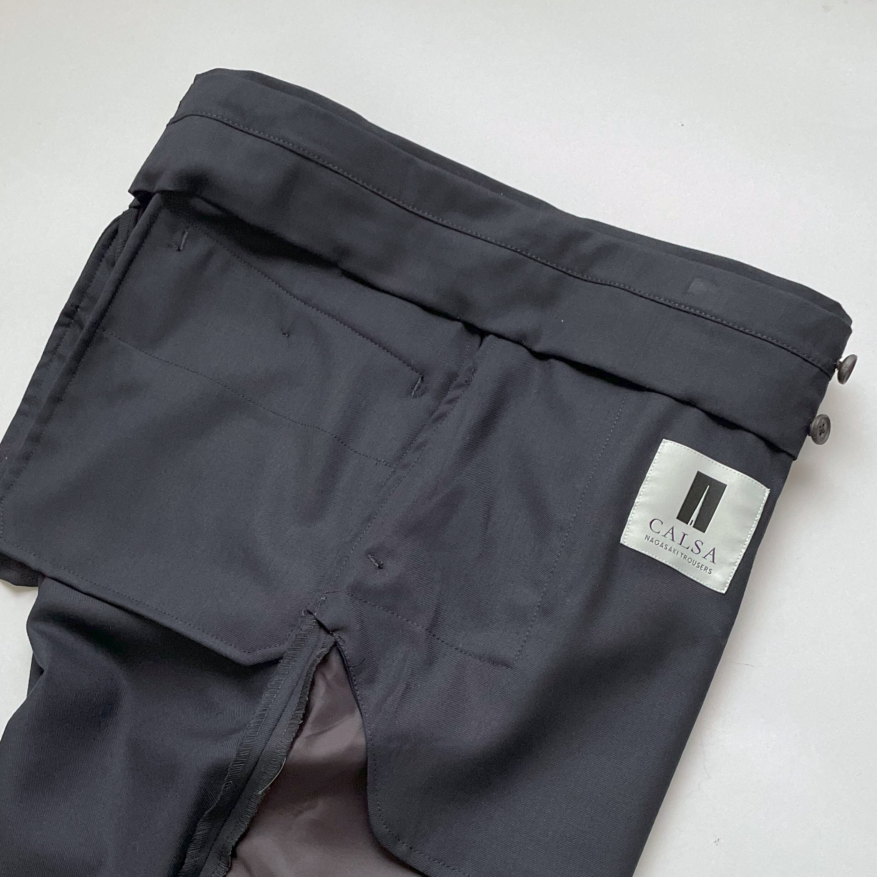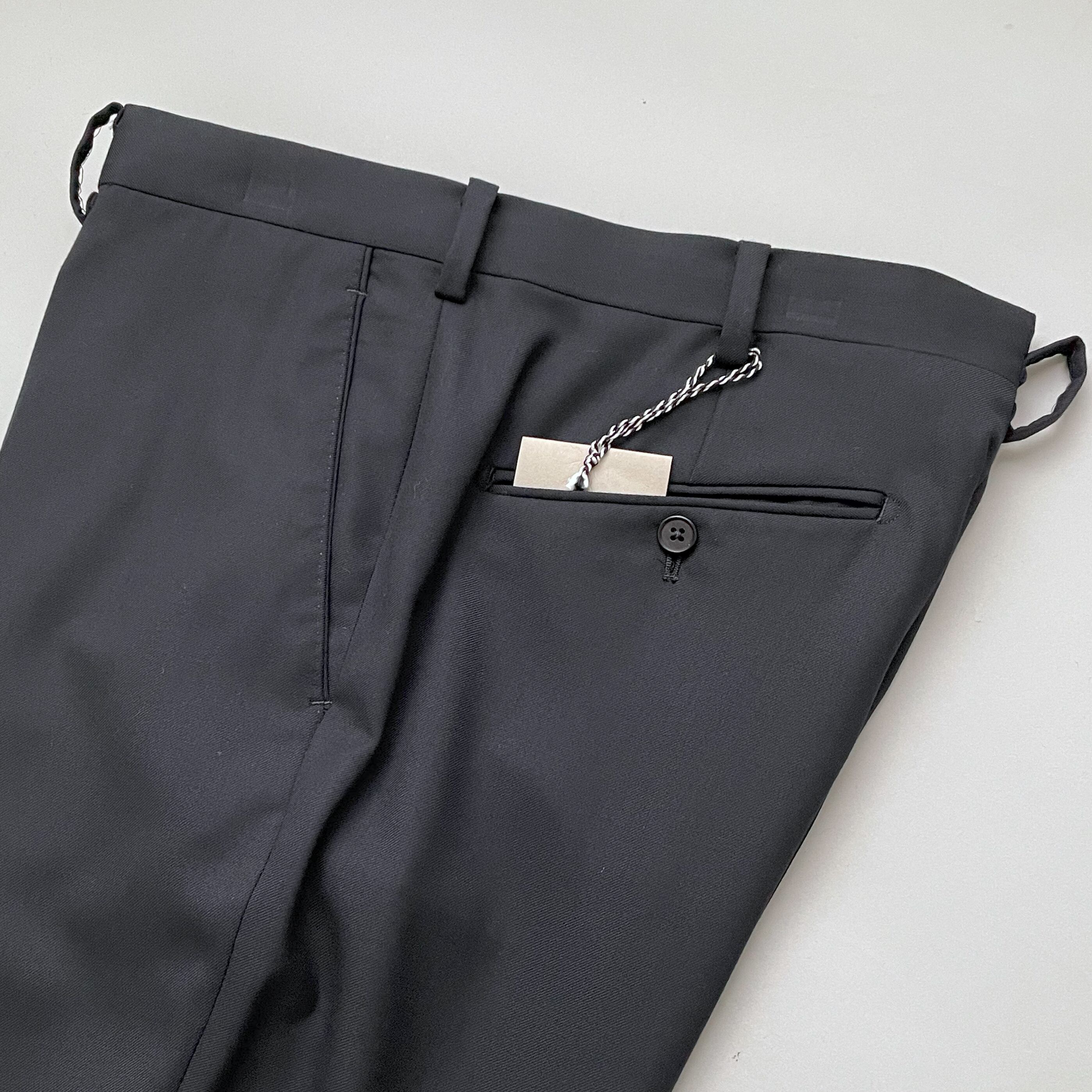 フォーマルの場で長く愛用したい黒のトラウザーズ。肌触り、発色ともに一級。