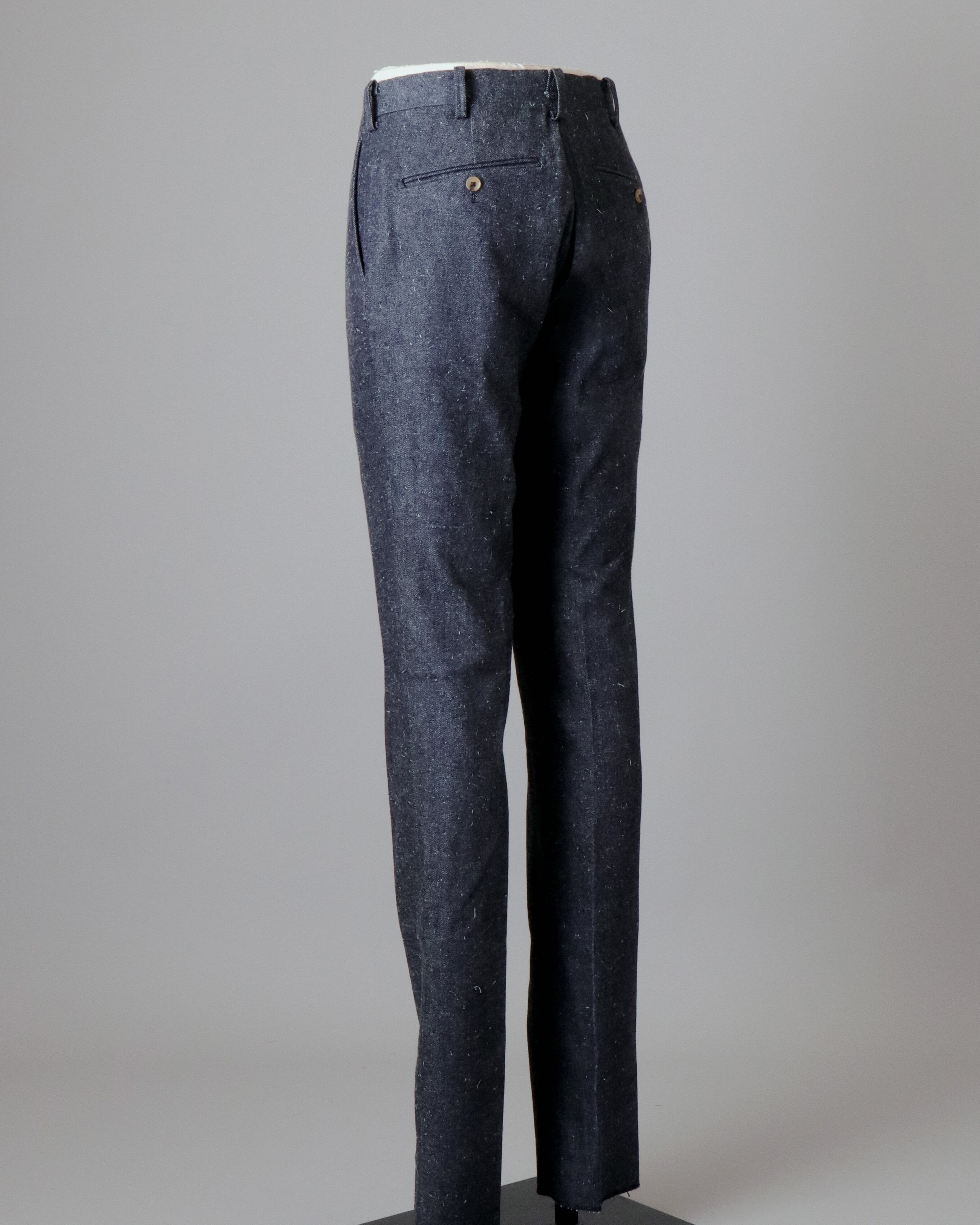 While the overall tailoring is done with a sewing machine, buttonholes, stitchwork, and the final assembly are done by hand.