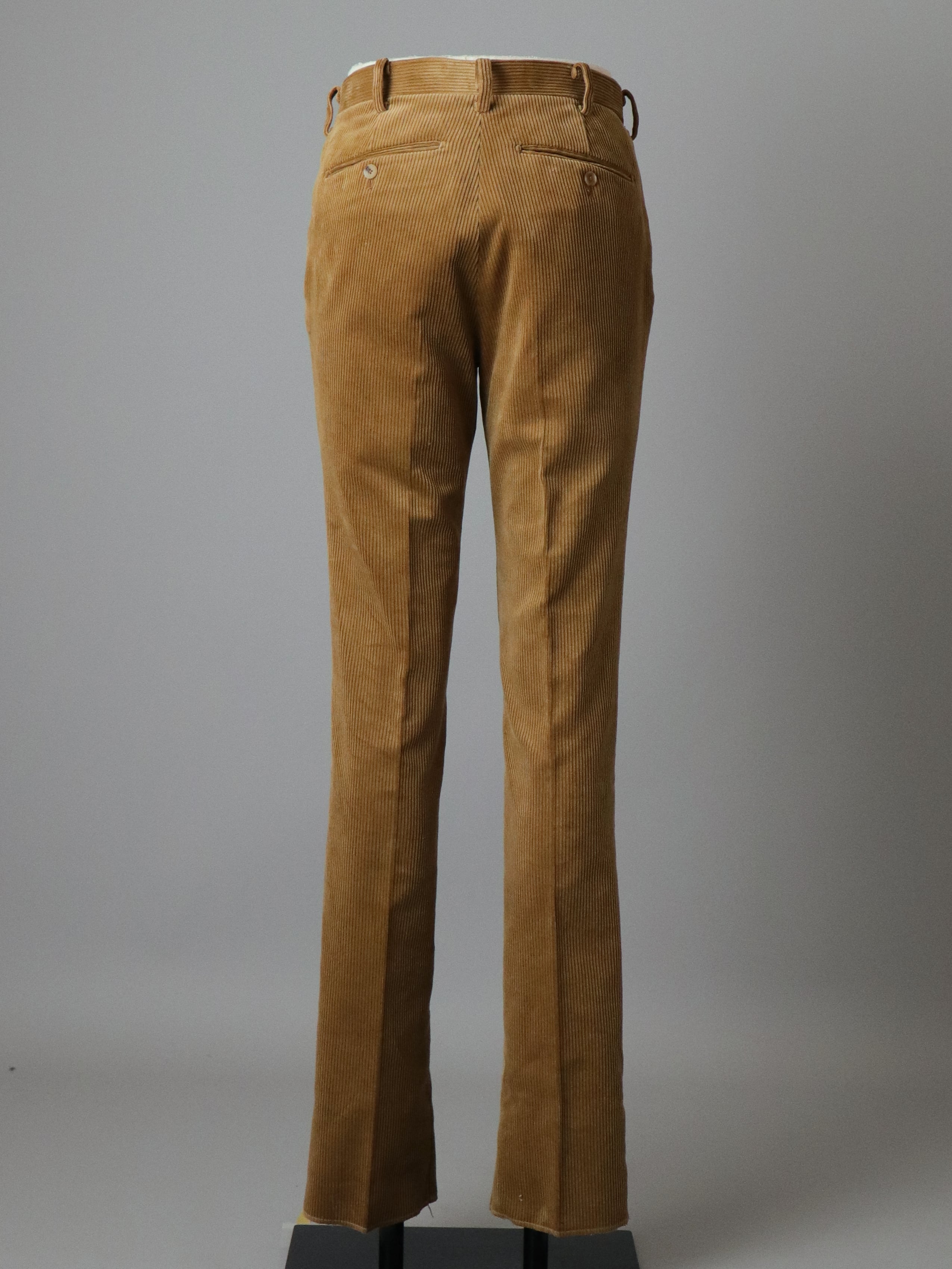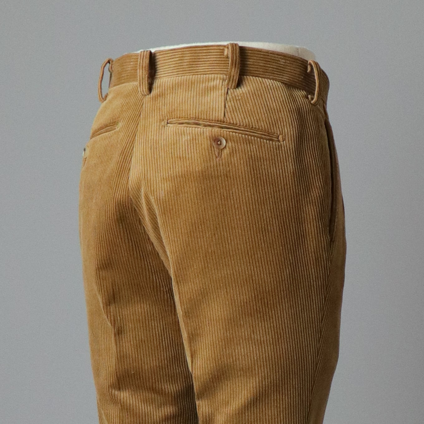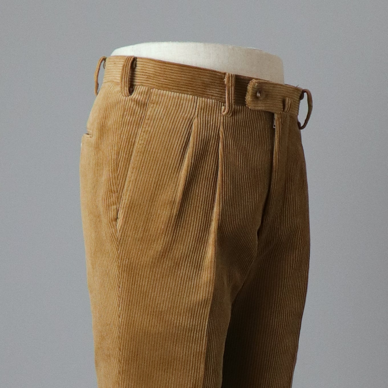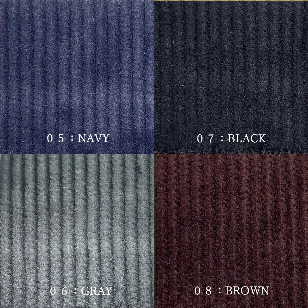 日本が誇る遠州(浜松)産の高品質なコーデュロイ生地です。8ウェールのベーシックな畝幅で、目付も485gとしっかりと織り上げられています。ヘビーウェイトで緻密な織りはその光沢感とともに重厚かつ高級な印象を与えます。