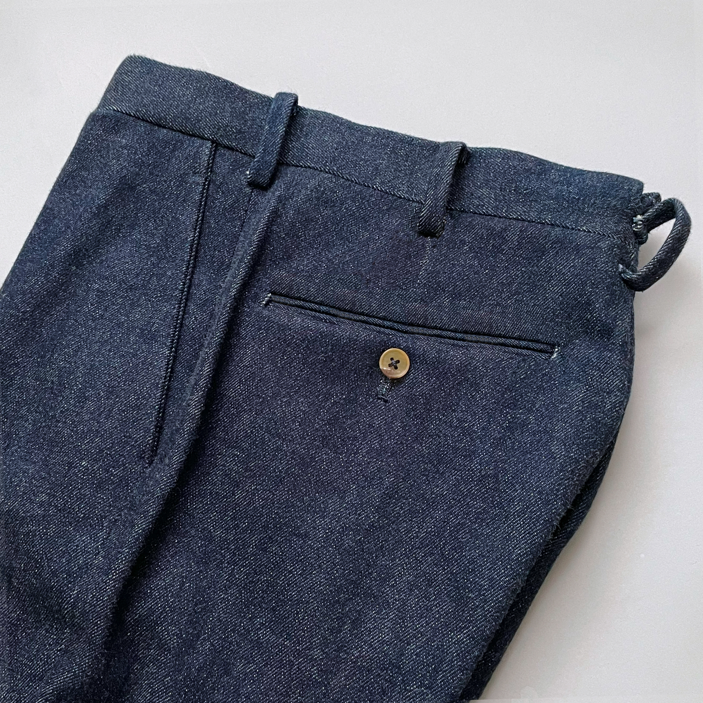 こちらの商品はインディゴ染料を使用しております。摩擦により、他の衣料や下着等に色移りしますのでご注意ください。