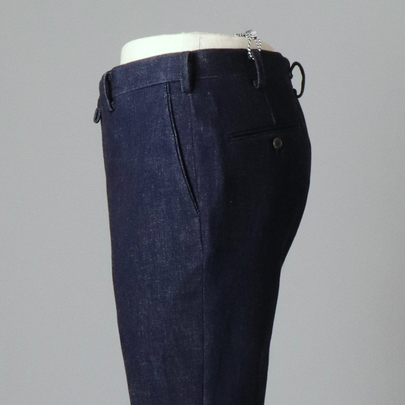 This 13oz organic cotton selvedge denim is produced by Japan Blue, a textile manufacturer based in Kojima, Kurashiki—renowned for crafting fabrics for brands such as Momotaro Jeans.