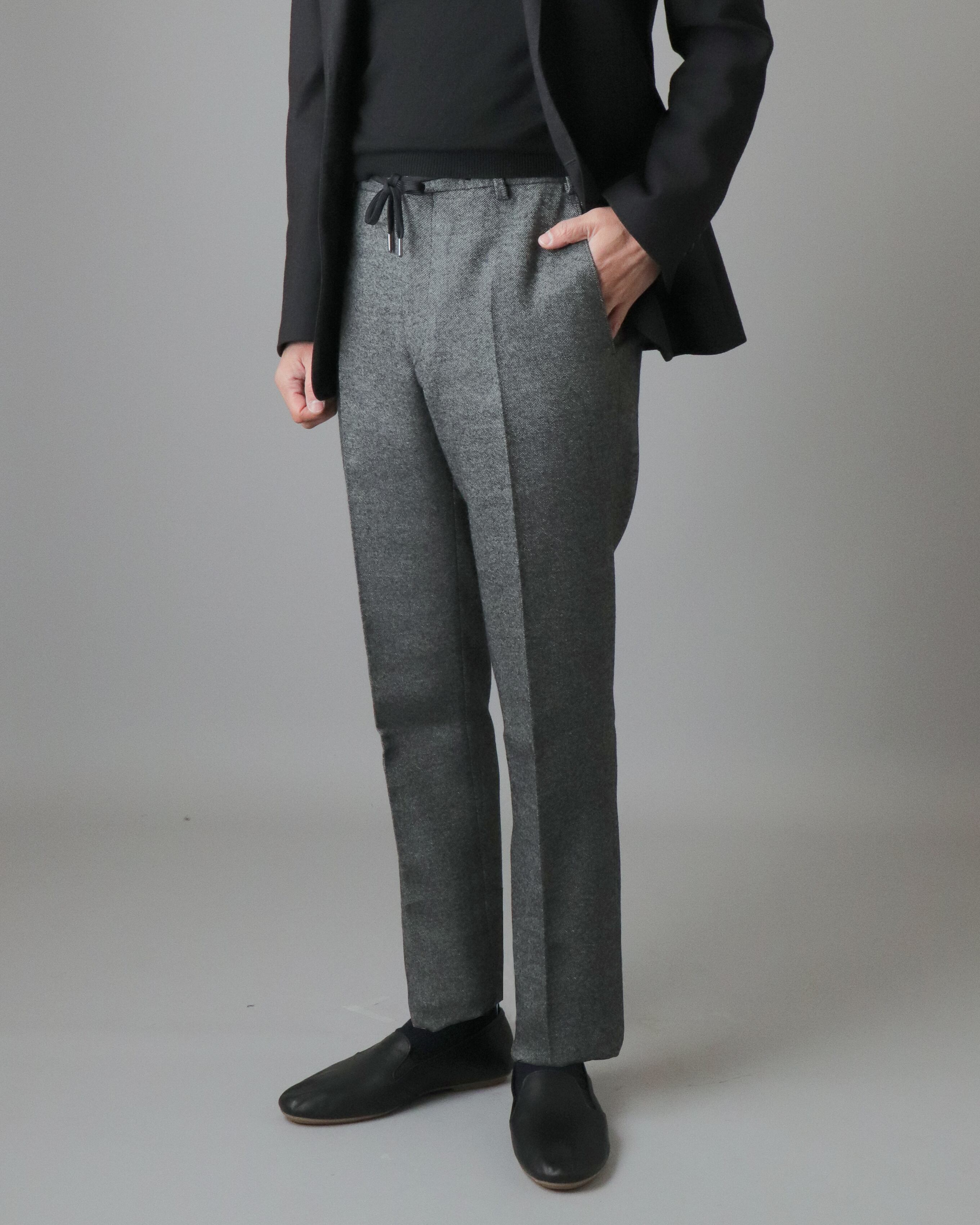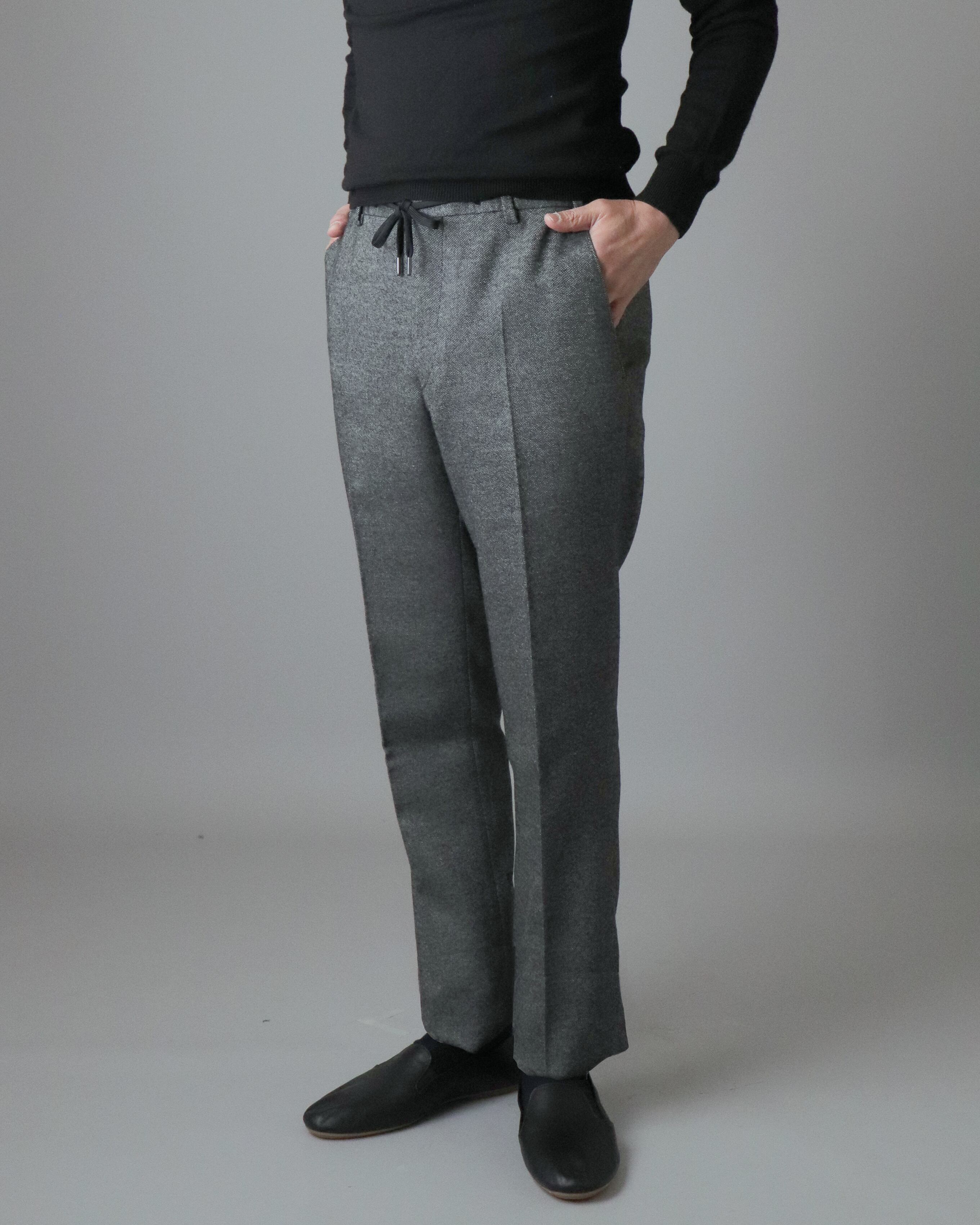 【Wool】【ウール】【無地】【Plain】【グレー】【Gray】【ツイード】【Tweed】【Autumn&Winter】【秋冬】【ゴムパンツ】【ドローコード】【ひもパンツ】